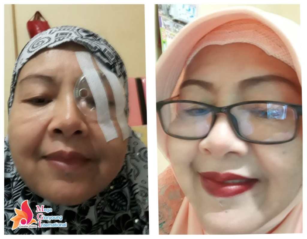 Ini salah satu contoh orang setelah operasi mata pakai kacamata medis.
