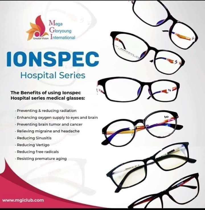 Dengan pakai kacamata medis ionspec ,mata kita akan terhindar dari kebutaan. Karena didalam framnya terdapat 5 kandungan ,dan di lensa ada 3 teknologi. Orang yg pakai ionspec susah terkena katarak. Karen dilapisi anti UV, anti sinar biru, dan juga anti radiasi.